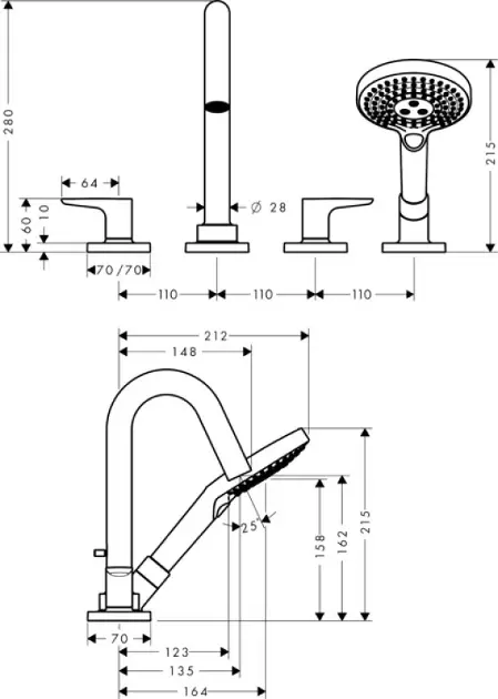 Kád peremes csaptelep, 4 lyukú a kád szélére történő felszereléshez... Teljes leírás megtekintése