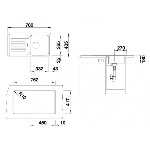 A Blanco Favos mini készüléket felülről történő felszerelésre tervezték. Fel van szerelve kétoldalas csepegtető tálca. A mosogató teljes mérete 780 x 435 mm. A mosogató méretei 332 x 365 mm, a mosogató mélysége pedig 180 mm. A mosogató mellett egy lefolyókészletet is talál a mosogatógéphez való csapot, egy szűrőszelepet és szerelvényeket.