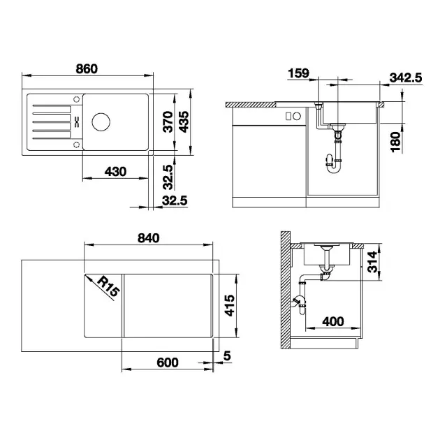 Tetszeni fog a vonzó és finom megjelenés, az eredeti alumínium szín és a tágas csepegtetőtálca, amely kényelmesen elfér a mosott poharak, tányérok és evőeszközök között. Blanco Favum XL 6 a következő kiváló minőségű szilgránitból készült. A készüléket alsó, legalább 600 mm széles szekrénybe történő felső szerelésre tervezték. A mosogató 180 mm mély és 430 x 370 mm méretű (lefolyófelület nélkül).
