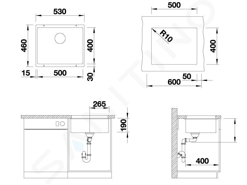 A Blanco Subline 500 a munkalap alá történő beépítésre készült. Csepegtető terület nélkül tervezték. Annak érdekében, hogy tökéletesen szolgálja Önt, helyezze el egy legalább 600 mm széles alapszekrényben. Méretei 530 x 460 x 190 mm. A mosogató rejtett C-overflow® túlfolyóval van felszerelve. Ön is értékelni fogja az egyedülálló, szár nélküli InFino® szűrőszelepet, amely az eredeti szűrő modern és formatervezett alternatívája.