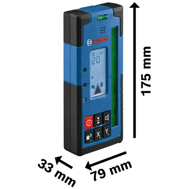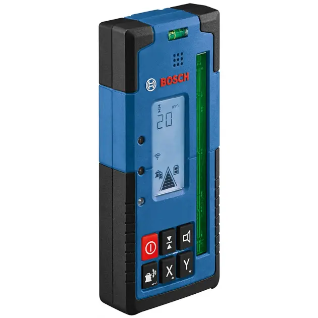 A kompakt, robusztus és kiváló minőségű LR 65 G Professional lézervevő azonnal érzékeli a zöld lézersugarakat. A hosszú vevőablak (125 mm) és a kétoldalas, háttérvilágítással ellátott kijelző mm-különbség funkcióval garantálja a hatékony munkát és a gyors lézeres felismerést. A tartós gumibillentyűzet, az IP 67-es por- és vízvédelem, valamint a szilárd, puha markolat teszi ezt a készüléket tökéletes eszközzé a nehéz munkákhoz. A GRL 650 CHVG Professional forgólézerrel való kommunikáció Bluetooth®-on keresztül még több funkciót tesz lehetővé, mint például a felhasználói kalibrálás (uCAL), valamint a CenterFind és a CenterLock kettős funkciója.