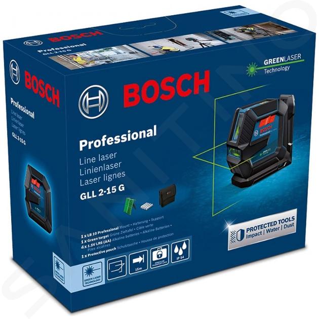 A GLL 2-15 G Professional akár 15 m hatótávolságban használható, önszintező tartománya max. +/- 4°, kevesebb mint 4 másodperc alatt.