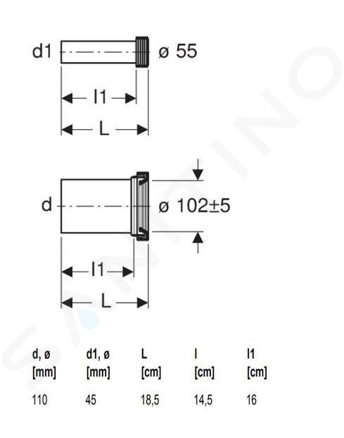 Cég Geberit elkészítette csatlakozócső-készlet falra szerelt WC csatlakoztatásáhozamely egy polietilén mandzsettával ellátott öblítőcsőből és egy polipropilén szennyvízcsőből áll. A tápcsövet (45x185 mm) és a szennyvízcsövet (110x185 mm) szintén fedőfedéllel szállítjuk.