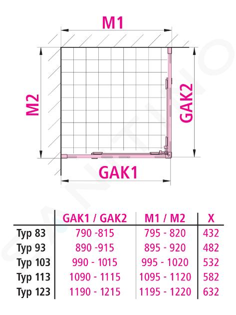 C2L zuhanyajtó sarokbejárattal rendelkező zuhanykabinhoz