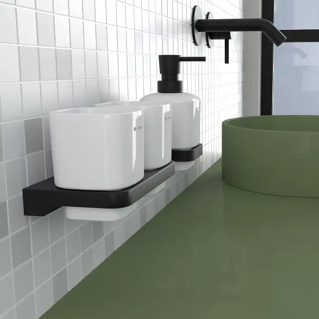Fali tartó fogkefe- és fogkrémtartó csészékkel tartó színe: fekete 2... Teljes leírás megtekintése