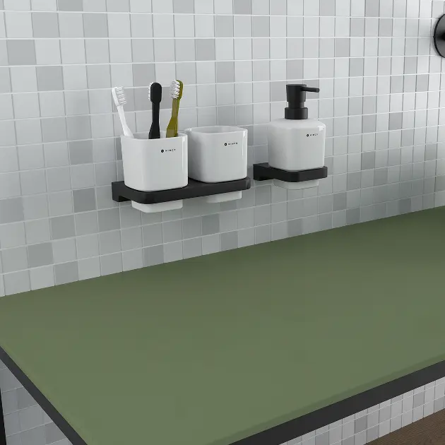 A Maya sorozat fürdőszobai kiegészítői újszerű formáikkal és lenyűgöző kialakításukkal tűnnek ki. Ez kiemeli a részletek minőségét. A fürdőszobai kiegészítők első pillantásra masszívnak tűnő kialakításukkal vonzzák Önt, amely azonban bizonyos könnyedséget és közvetlenséget hordoz. Az alapmotívum az élek és a négyzetek, amelyek ízlésesen keverednek a sorozat összes fürdőszobai elemében. Itt talál törölközőhorgokat, WC-papírtartókat, törölközőtartókat, kerámia és üveg fali szappanadagolókat, fogkefe- és fogkrémtartó csészéket, szappantartókat, különféle polcokat és WC-keféket tartókkal. A Maya sorozat az anyagok időtálló kombinációján, valamint a kontrasztos színeken alapul: fekete - fehér vagy fehér - króm.