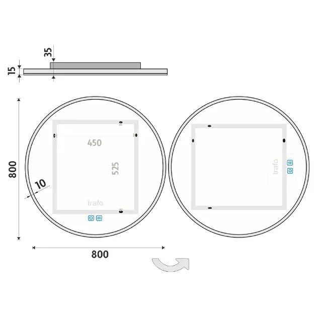 Tükör LED világítással szín alumínium váz anyaga alumínium átmérő 800... Teljes leírás megtekintése