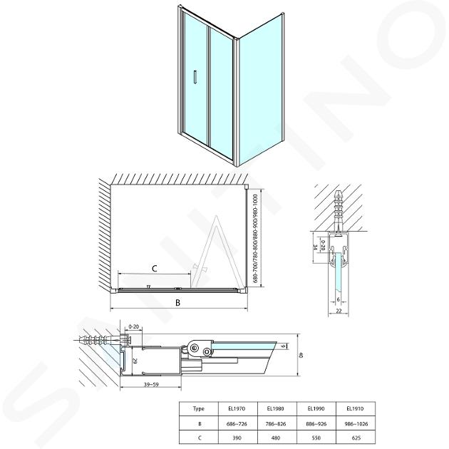 A zuhanyajtó és az oldalfal kombinálásával négyzet vagy téglalap alakú paravánt hozhat létre.