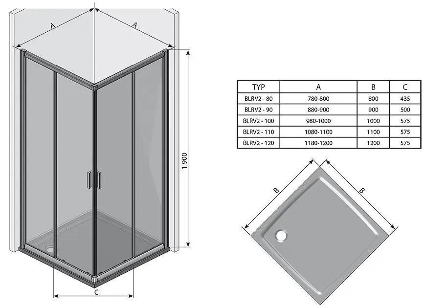 BLRV2K zuhanyajtó sarokbejáratú zuhanykabinhoz