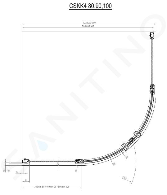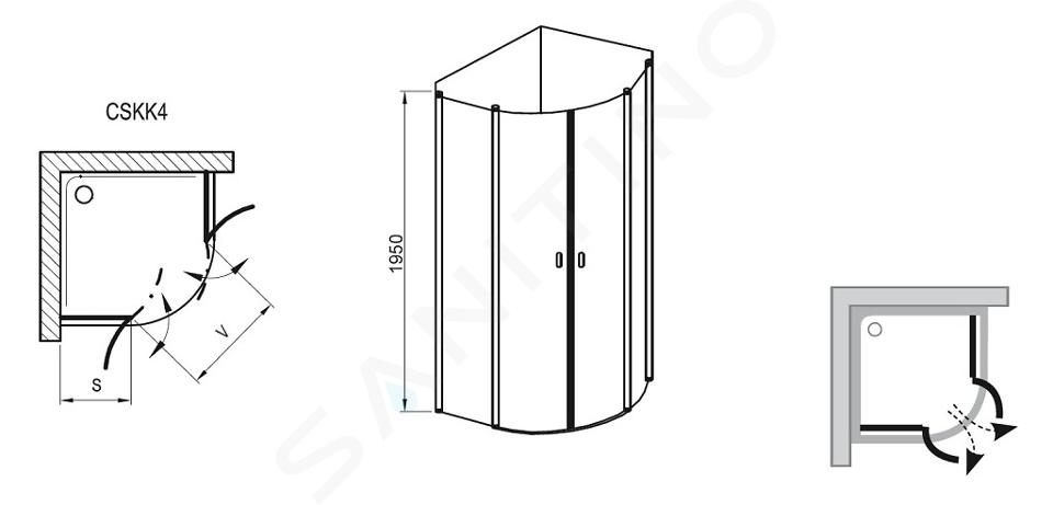 Negyedkörös zuhanykabin CSKK4-90 Beépítési méretek: 880-900 x 880-900... Teljes leírás megtekintése
