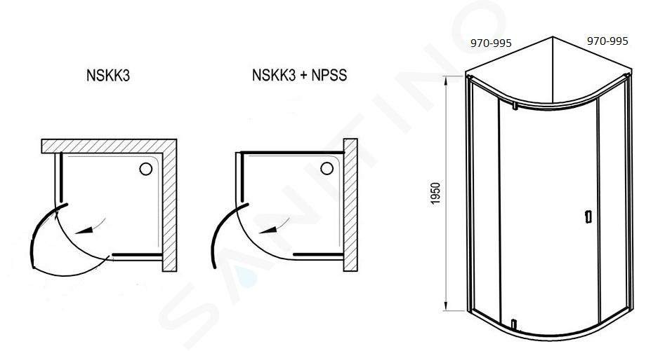 Negyedkörös zuhanykabin NSKK3-100 fehér + átlátszó
