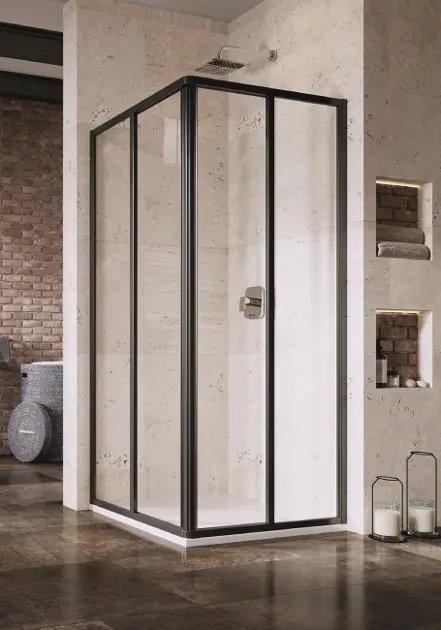A sarokzuhanykabin kialakításához 2 darab SRV2-S típusú tolóajtót kell rendelnie. A két rész különböző méreteinek kombinálásával négyzet vagy téglalap alakú zuhanykabint kaphat. (pl. 750 x 900 mm, 900 x 900 mm, 800 x 1000 mm stb.)