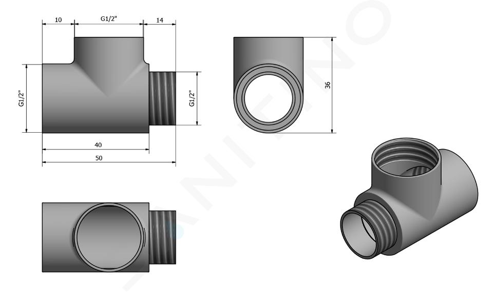 T-darab a radiátor csatlakoztatásához