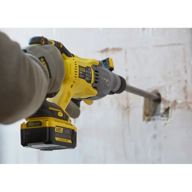• Nagy teljesítményű STANLEY® FATMAX® 18V akkumulátoros kombikalapács a betonban lévő lyukak rögzítéséhez